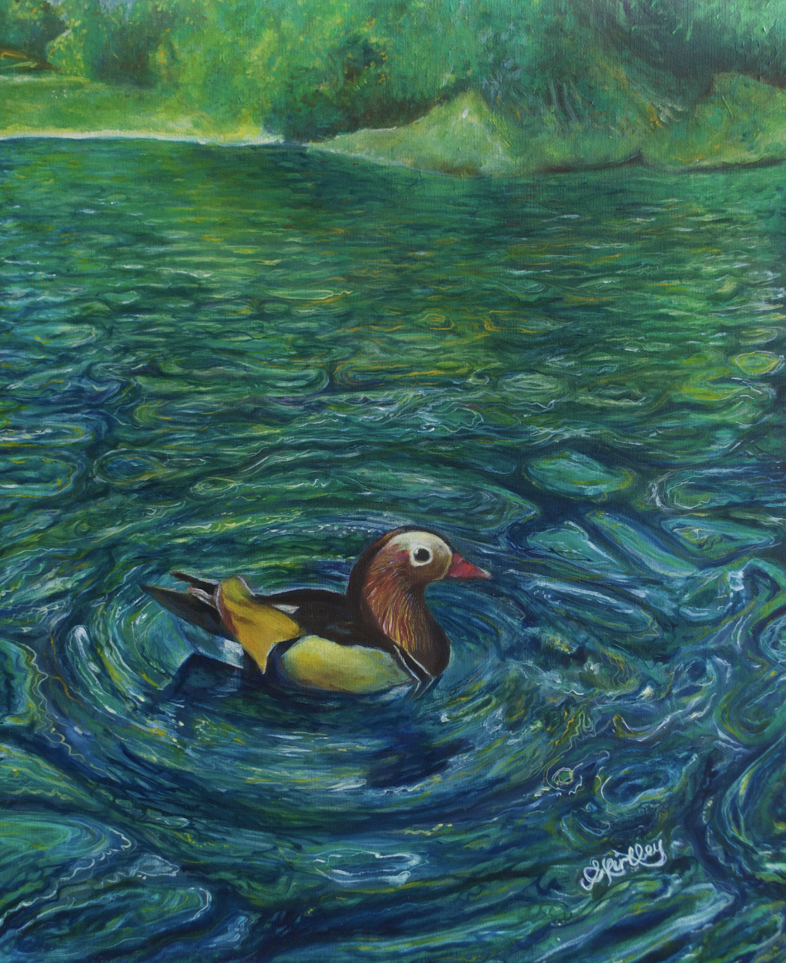 Inspired by a Mandarin duck I spotted gliding across a lake in the Bois de Boulogne in Paris, this painting captures the spectacular colours and confident charm of one very well-dressed gentleman. 🦆